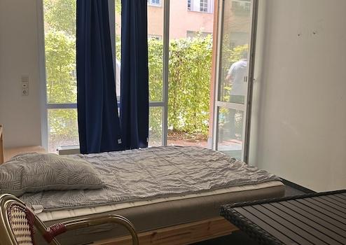 Willkommen in unserer netten WG mit unkomplizierten, aber rücksichtsvollen Bewohnern! Wir bieten teilweise ausgestattetes Zimmer in einer 7er WG im ruhigen Rückgebäude, das gleichzeitig super zentral liegt. Das Zimmer ist hell und geräumig und besticht durch eine eigene große Terrasse mit Süd-Westausrichtung mit Minigartenanteil.