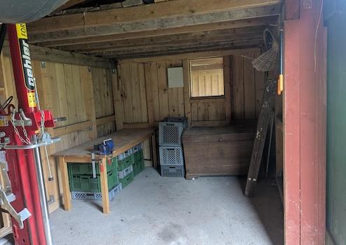 - Tierhaltung möglich: Ein genehmigter Hühnerstall und ein genehmigtes Nebengebäude, das sich flexibel als Garage, Werkstatt oder Pferdestall nutzen lässt. Dazu kommen mehrere kleine Garten- und Spielhäuser.