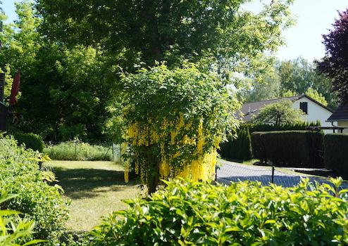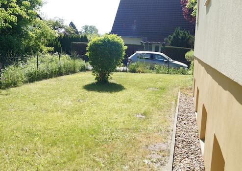 Eine begrünte Gartenfläche umschließt das Haus und ist in Teilen für die Hausgemeinschaft nutzbar.