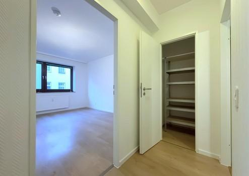 Es empfängt Sie eine frisch renovierte, ca. 101 m² große Wohnung, die mit ihrem gut durchdachten Grundriss für eine optimale Raumaufteilung sorgt. Über die geräumige Diele, die mit einem separatem Abstellraum zusätzliche wertvolle Staufläche bietet, finden Sie zur linken Seite die beiden Schlafräume.