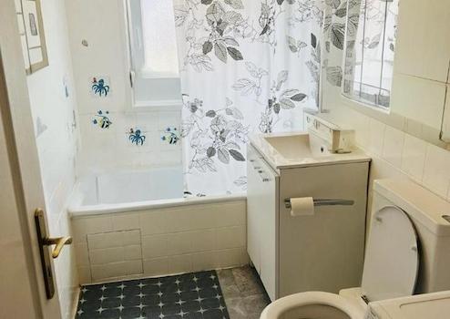 • Laminatboden in der gesamten Wohnung, Bad mit Fliesen