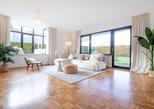 Helle Wohnräume mit Parkettböden