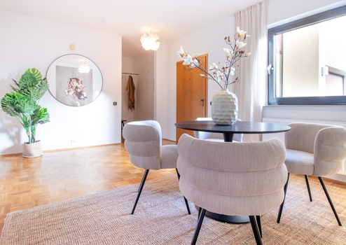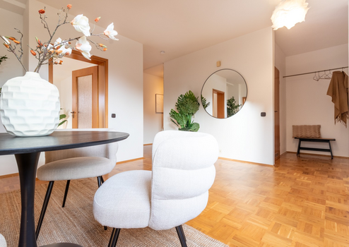 Die Wohn- und Schlafräume sind mit Parkettböden ausgestattet und vermitteln eine wohnliche, warme Atmosphäre. Der funktionale Grundriss eignet sich sowohl für Paare als auch für Familien.