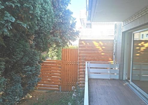 • Großer Balkon mit Treppe in den uneinsehbaren Garten