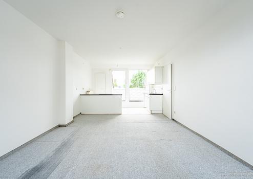 Beim Betreten der Wohnung gelangt man zunächst in den Flur. Von hier aus gelangen Sie in das Badezimmer, welches über eine über eine Badewanne verfügt. Das große Wohn- und Schlafzimmer mit offener Küche bilden den Mittelpunkt der Wohnung.