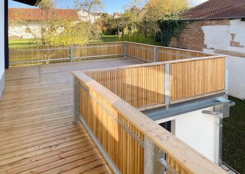 Die obere Wohnung ist mit einer 31 m² großen Dachterrasse und einer 9m²großen, schattigen Loggia ausgestattet.