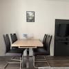 Der Wohnraum mit bequemem Sitzbereich und Esstisch, der auch als Arbeitsplatz genutzt werden kann, bietet vielfältige Optionen.