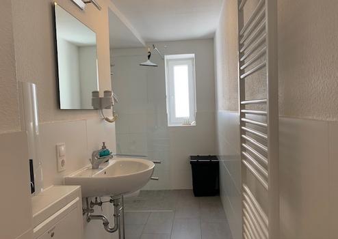 modernes Duschbad; 1 TV-Gerät im Wohn- und 1 TV-Gerät im Schlafzimmer;