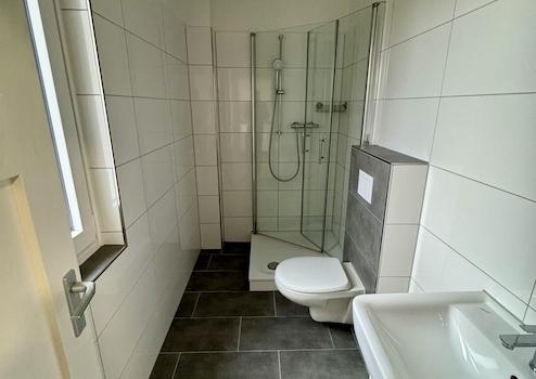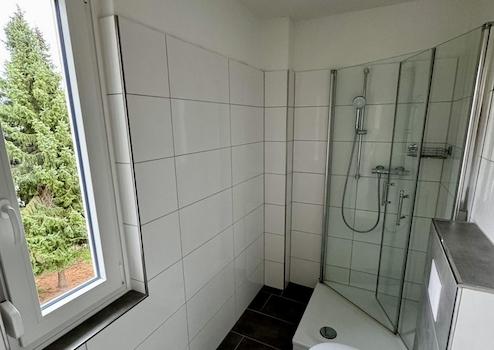 - Rundum erneuertes Badezimmer mit modernen Armaturen und großer Dusche
