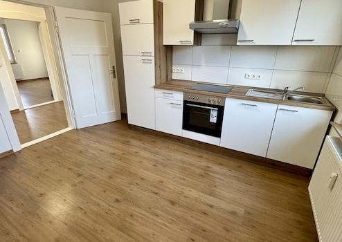 Die großzügige Wohnküche ist mit einer neuen Einbauküche ausgestattet und bietet ausreichend Platz zum Kochen und Verweilen. Das modernisierte Tageslichtbad verfügt über eine nahezu bodengleiche Dusche.