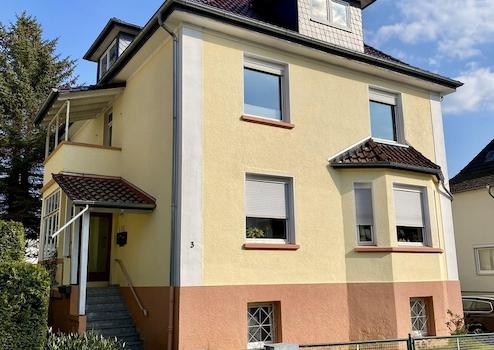 Die lichtdurchflutete, renovierte 3-Zimmer-Wohnung befindet sich im 1. Obergeschoss einer fortlaufend modernisierten Altbauvilla im gefragten Stadtteil Holzhausen von Bad Pyrmont.