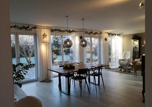- Fußbodenheizung im gesamten Haus, teilweise auch im Keller (Büro, Flur, HWR)