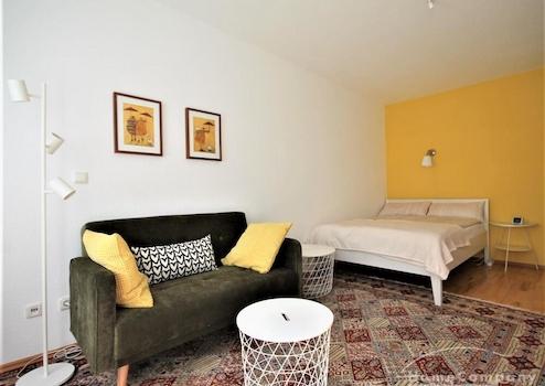 Wohn/Schlafbereich mit Couch und 140x200cm Bett