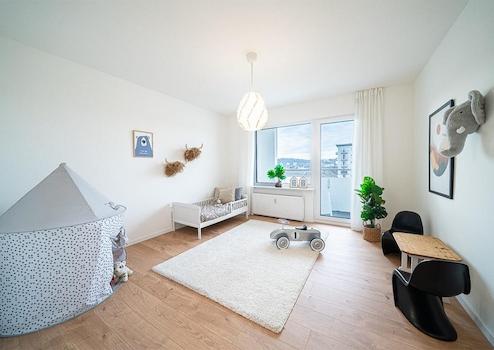 Die Wohnung verfügt über 1 großes Wohnzimmer, 1 Wohnküche, 1 Schlafzimmer, 1 Kinderzimmer, 1 Duschbad, 1 WC, 1 Sonnenbalkon und 1 Wohnbalkon.
