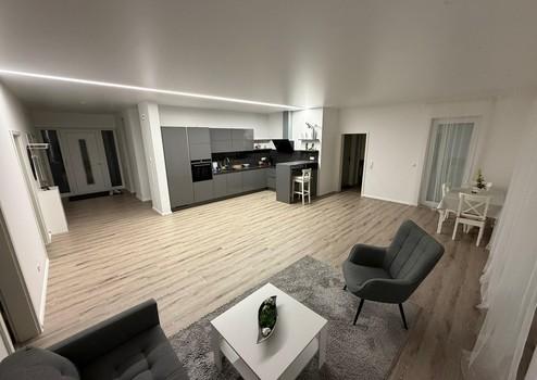 Der Wohnbereich ist offen und lichtdurchflutet gestaltet und bietet direkten Zugang zur Terrasse bzw. zum Garten. Die hochwertige Einbauküche fügt sich harmonisch in das Wohnkonzept ein und ist bereits im Kaufpreis enthalten.