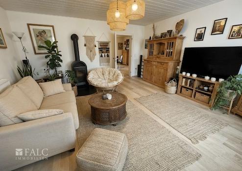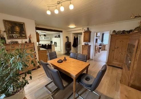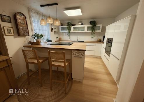 Beim Betreten dieses einladenden Hauses aus dem Jahr 1980 gelangen Sie zunächst in einen großzügigen Eingangsbereich, von dort aus ist der offene Essbereich nahtlos mit der modernen Küche verbunden, die durch ihre offene Gestaltung den Blick in den Garten freigibt. Diese Raumaufteilung fördert ein kommunikatives Miteinander und ist ideal für gesellige Abende mit Familie und Freunden. Die Küche ist funktional ausgestattet und bietet ausreichend Platz für kulinarische Aktivitäten oder einen langen Abend mit Freunden vor dem Kamin.