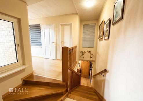 Weiter führt der Rundgang zu den privaten Räumen des Hauses. Insgesamt stehen Ihnen sieben Zimmer zur Verfügung, die flexibel als Schlafzimmer, Arbeitszimmer oder Hobbyräume genutzt werden können. Jedes Zimmer ist gut proportioniert und bietet ausreichend Platz für individuelle Gestaltungsmöglichkeiten.