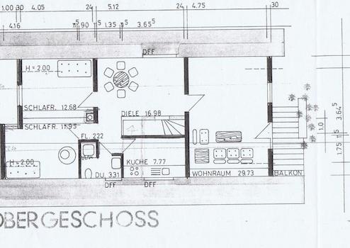 Im Obergeschoss haben Sie ein großes Wohn- oder Schlafzimmer, dass über einen Balkon verfügt. Die Südausrichtung verspricht den ganzen Tag Sonne pur. Platz für eine weitere kleine Küche bietet das Dachgeschoss auch. Auch ein Arbeitszimmer bietet sich hier an. Das Badezimmer hat neben einer Toilette auch eine Dusche, so kommt man sich morgens nicht in die Quere. Ein geräumiger Schlafraum rundet das Obergeschoss ab.