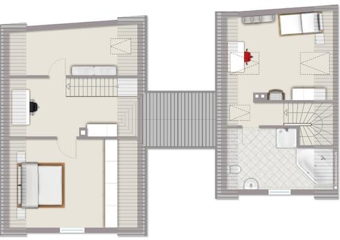 Der Anbau bietet im Erdgeschoss Platz für die Haustechnik und Hauswirtschaftsräume. Neben dem Heizraum und einer Werkstatt befindet sich hier auch eine praktische Waschküche. Im Obergeschoss des Anbaus stehen ein weiteres Badezimmer (Wanne und Dusche) sowie ein Studio zur Verfügung.