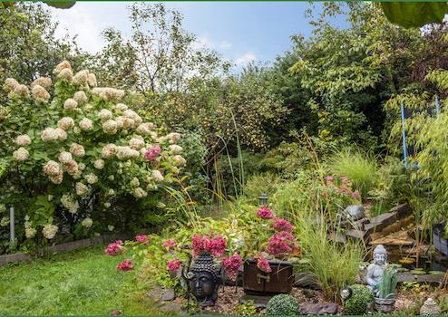 Das Grundstück ist von der Straße und von Nachbargrundstücken aus nicht einsehbar – ein geschützter Rückzugsort mitten in Burscheid. Wer hier eintritt, kommt gezielt an und bleibt ungestört.