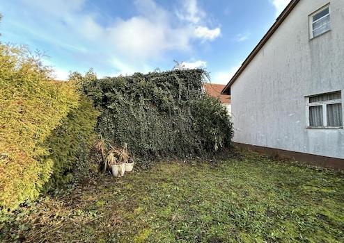 Zwischen dem Nebengebäude und der ehemaligen Bäckerei liegt eine z. B. als Grillplatz gut nutzbare und vor Blicken geschützte Grünfläche.