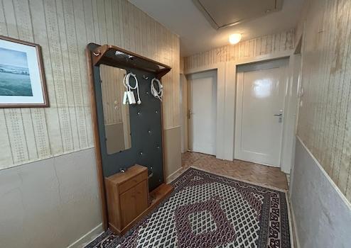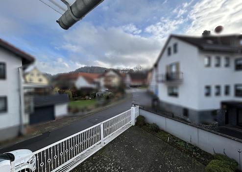 Der helle Flur hat einen direkten Zugang zum Balkon mit Blick in den Hof und ins Gersprenztal und erschließt die umliegenden Räume.