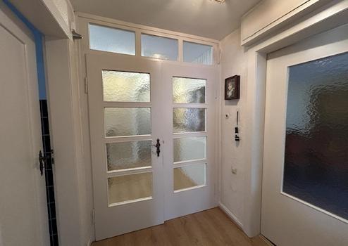 Die ebenerdige Haustür vom Hof führt uns in Erdgeschoss mit den Räumen der ehemaligen Bäckerei.