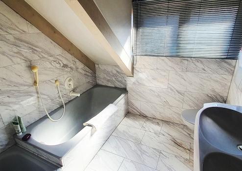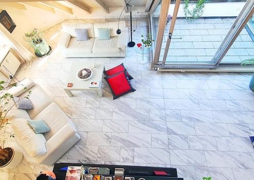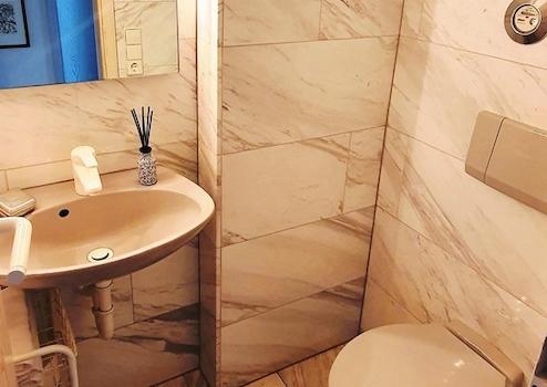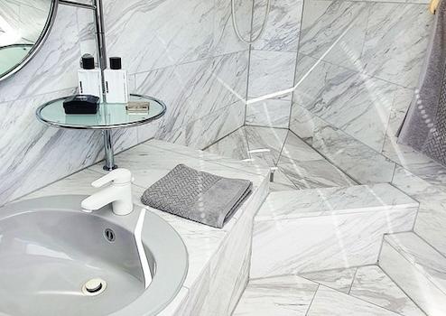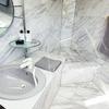 - hochwertig ausgestattetes Bad mit Dusche und WC sowie separates Gäste-WC - Wand- und Bodenbelag in hellem Marmor - zweites Marmor-Gäste-Duschbad neben der Galerie