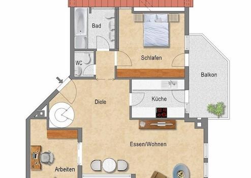 Balkon, Keller, Dachterrasse, Vollbad, Duschbad, Gäste-WC, Sonstiges (s. Text)