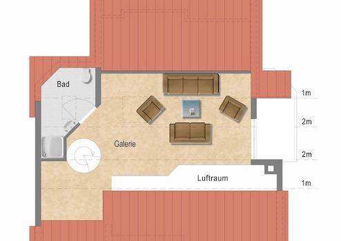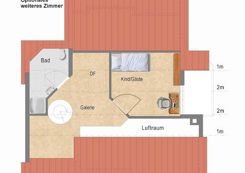 - offene, große Galerie (ein 4. Zimmer ist so abteilbar, dass ein geschlossener Raum entstehen kann und trotzdem eine gut belichtete Galerie davor bestehen bleibt)