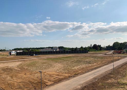 Die Erschließungsmaßnahmen sind abgeschlossen und die Baustraße ist inkl. Beleuchtung fertig gestellt, so dass direkt mit der Aufnahme der Hochbautätigkeiten begonnen werden kann.