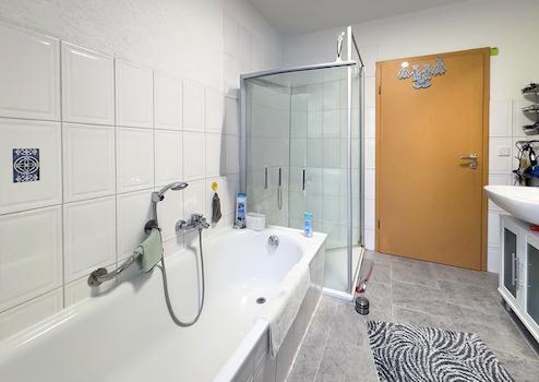 Wohnung 1: Wohn-, Ess- und Kochlandschaft, Schlafzimmer, Kinderzimmer, Diele, Bad, Gäste-WC, Abstellraum