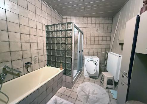 Erdgeschoss: Wohnzimmer, Schlafzimmer, Büro I, Büro II, Küche, Flur, Bad (mit Wanne und Dusche), Gäste-WC, Abstellraum