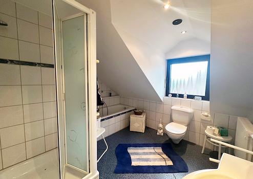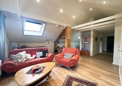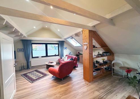 Das Dachgeschoss ist ein Traum. Sichtbare Holzbalken und wohnliche Atmosphäre zeichnen diesen Bereich aus.