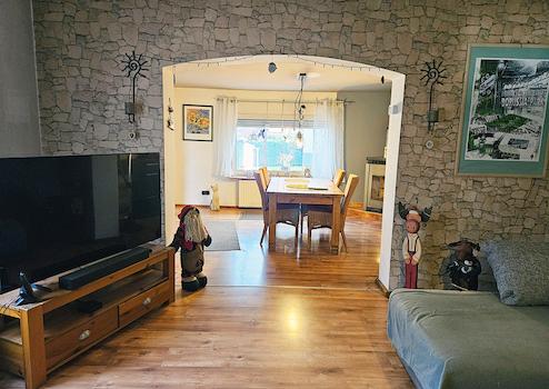 Erdgeschoss: Wohn- und Esszimmer, Küche, Diele, Gäste-WC und Terrasse
