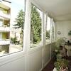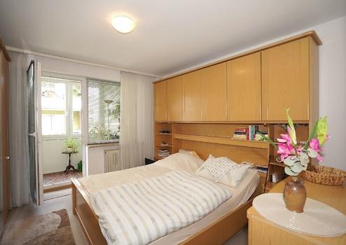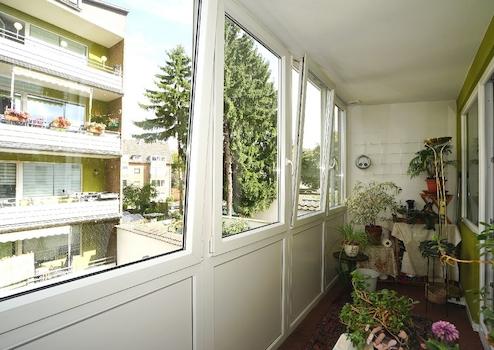Das Schlafzimmer ist zur Hausrückseite ausgerichtet und mündet in einen Wintergarten, der nachträglich aus dem ursprünglichen Balkon entstanden ist. So kann man ganzjährig draußen sitzen.