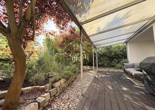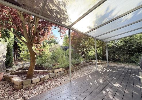• Große Terrasse mit Terrassendielen aus Hartholz