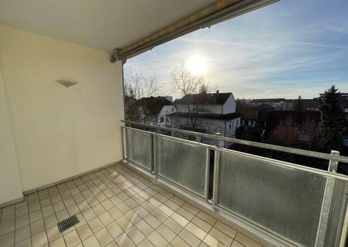 Besonderer Pluspunkt ist die schöne Loggia Richtung Südwesten mit Sonnenmarkise und Blick in den Garten.