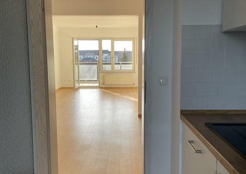 Die helle Dreizimmerwohnung verfügt über einen geräumigen Wohn-/Essbereich, ein Schlafzimmer und ein weiteres Zimmer, das als Kinder-/Gäste- oder Arbeitszimmer genutzt werden kann, eine Küche, einen Abstellraum, einen Flur, ein Badezimmer sowie ein separates Gäste-WC.