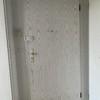 Die Wände und Decken der Wohnung sind mit Raufaser tapeziert und weiß gestrichen.