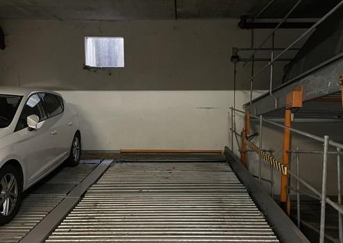 Ein Pkw-Stellplatz in der Tiefgarage gehört zum Wohnungseigentum. Der Stellplatz auf der oberen Ebene des Vierfach-Parkers (Duplex Hebebühnentechnik) bietet Kopffreiheit zum bequemen Ein-/Aussteigen.