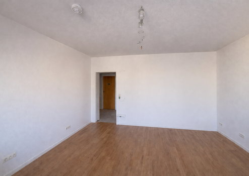 Das Herzstück der Wohnung ist das helle Wohnzimmer mit angrenzender Küche und Zugang zum Balkon, der einen entspannten Blick in den ruhigen Innenhof bietet. Das Schlafzimmer ist großzügig geschnitten und bietet ausreichend Platz für einen Kleiderschrank und ein Doppelbett.