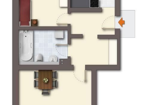 2 Raum Wohnung mit Balkon und Badewanne