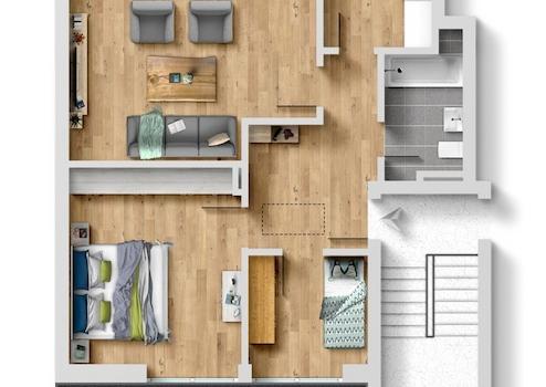 Die zum Verkauf stehende Wohnung Nr. 11 befindet sich im Dachgeschoss des Hauses Nr. 17. Die Wohnung ist frei und kann kurzfristig selbst bezogen werden.