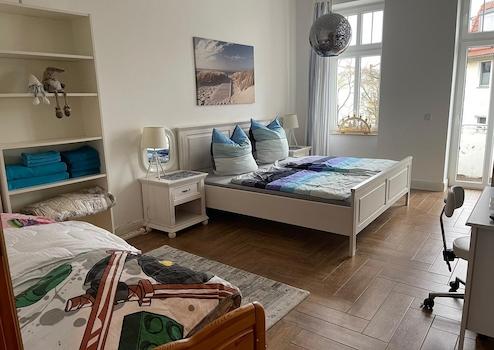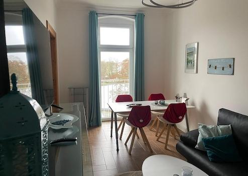 This bright, furnished and lovingly renovated historic apartment is located on the second floor of a well-maintained building in Berlin-Pankow. With approximately 50 m² of living space, 2 rooms, it offers accommodation for families, groups or business travelers. The apartment features 1 bedroom, 1 bathroom with shower, extra kitchen, wide hallways and a balcony with a beautiful view over the adjacent park and lake. High ceilings and classic historic details create a pleasant and welcoming atmosphere. Available on 1st of January 2026.