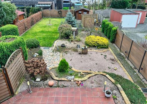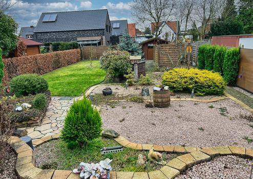 - eingezäunter Garten mit Terrasse & Gartenhütte