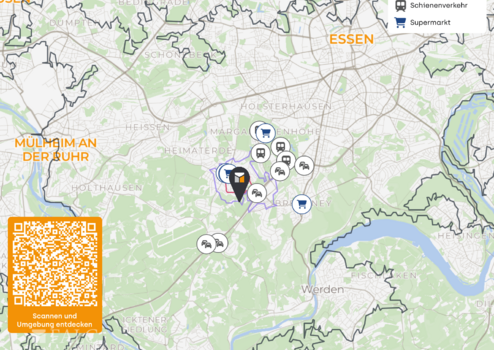 Wer gerne draußen unterwegs ist, profitiert von vielen Feldern, Wiesen und Spazierwegen in der direkten Umgebung. Auch Sport- und Freizeitangebote sind schnell erreichbar. Die Verkehrsanbindung ist durch Buslinien und die Nähe zur A52 bestens, sodass man sowohl die Innenstadt als auch das Ruhrgebiet zügig erreicht.