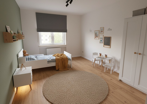 Die digitalen Darstellungen dienen als Einrichtungs- und Gestaltungsvorschläge und zeigen das Entwicklungspotenzial der Wohnung.