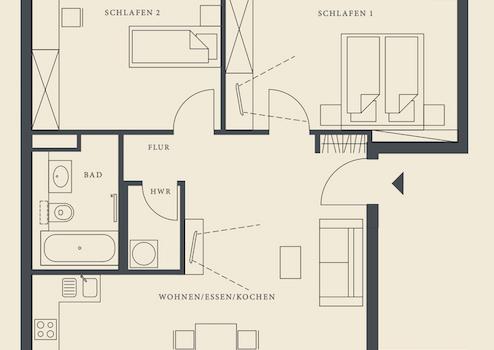 Auf einer Wohnfläche von ca. 86 m² erwarten Sie zwei großzügige Terrassen, die nach Osten und Westen ausgerichtet sind.