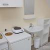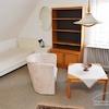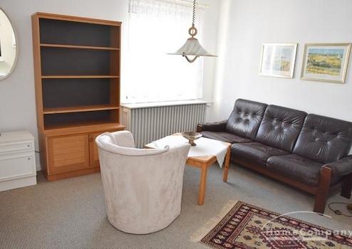 Mehrfamilienhaus in ruhiger Straße. Modern möblierte Wohnung, Kiefernholzmöbel. Wohnzimmer mit Couch, Tisch, Kommode, Vitrinenschrank, Korbstuhl, Schreibtisch mit Stuhl, DVBT-TV. Schlafzimmer mit Doppelbett, Kommode, ...